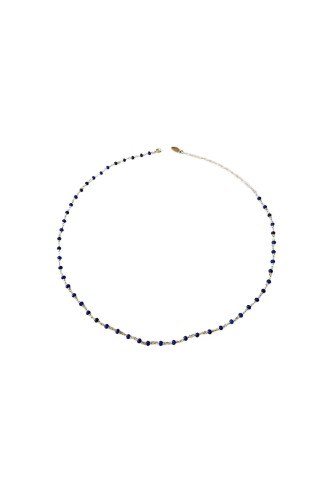 Balmy Nights Station Necklace with Sapphire Beaded Gold Chain.