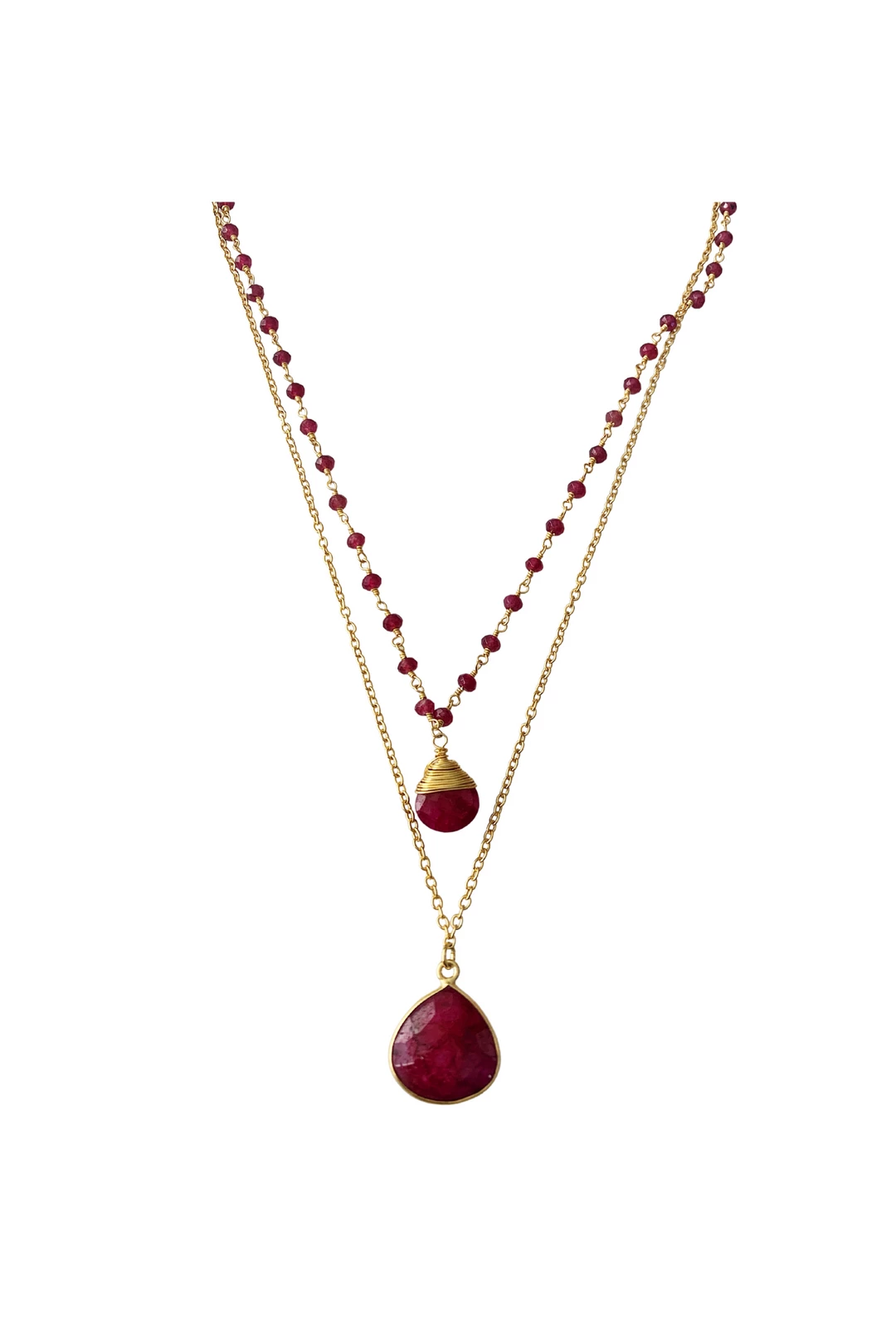 Double Jill Necklace with Gold Ruby Chain and Ruby Pendant.