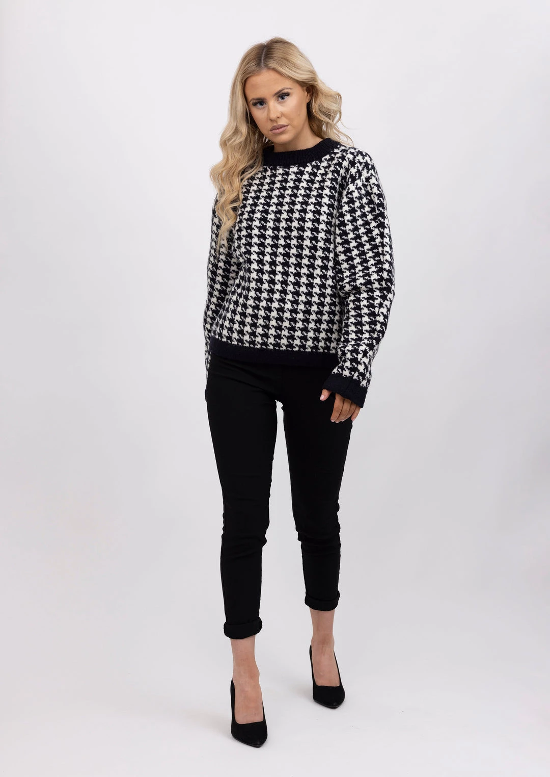 This jumper has a timeless houndstooth pattern, this finely knit jumper exudes elegance. Its regular fit and contrast perfectly with our Éclat leggings or Stay True Joggers. BeReal Wear – easy-to-wear wardrobe staples that combine classic and contemporary styles.
