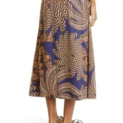 Farm Rio women Yawanawa Vanahu Navy Midi Skirt in Multi