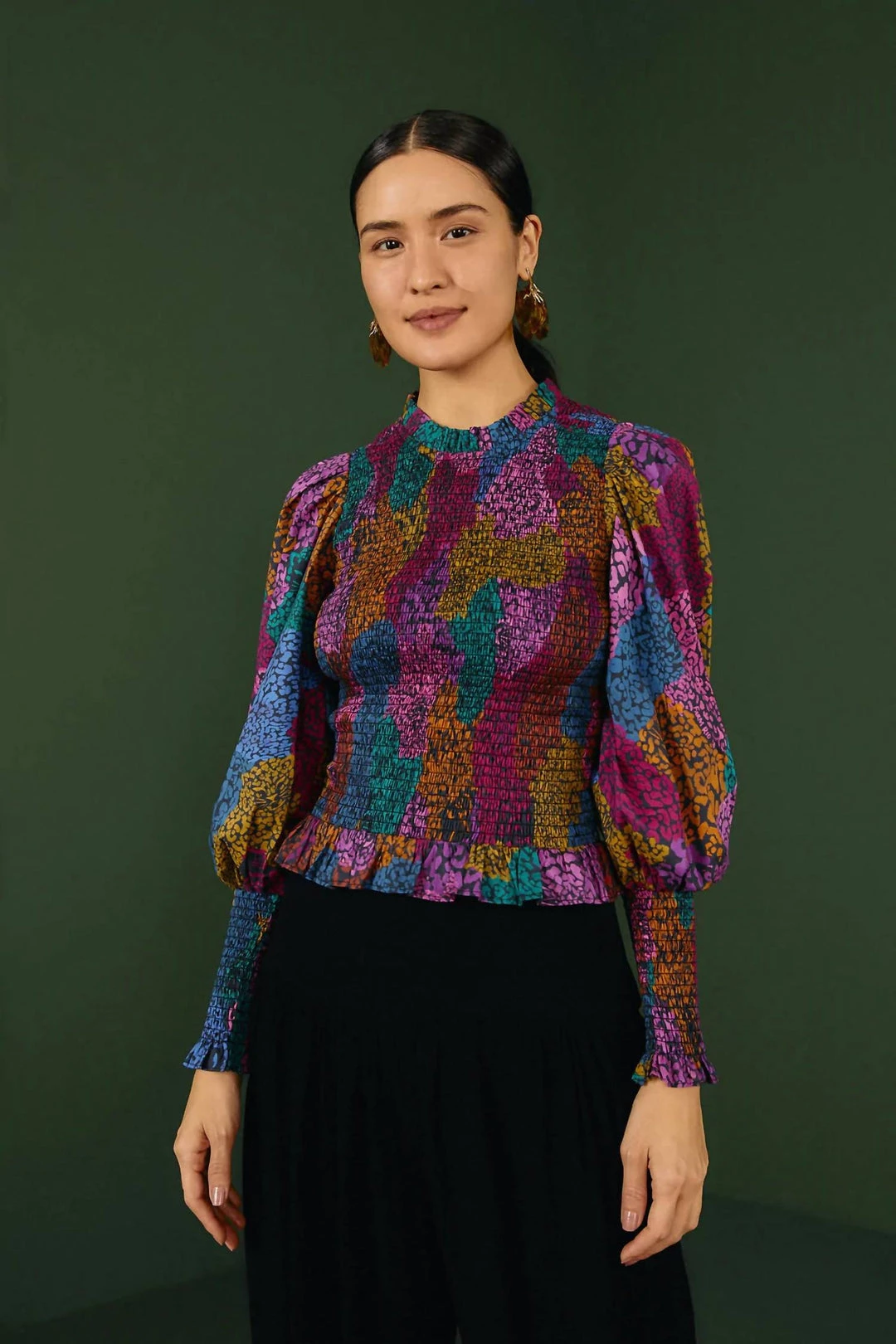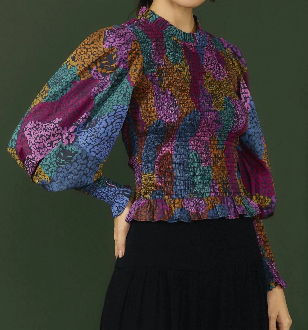 What a lovely statement to make this season, girl! The Rainbow Mix Blouse brings that cute smocked silhouette to embrace you with its body-hugging fit, and the long sleeves help you deal with the breeze. It matches your eye-popping bottoms (printed or not!), and your accessories are very welcome too.