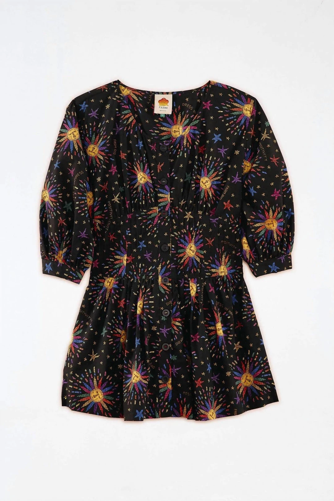 Easy fit. Round neck. Center front button placket. ¾ sleeves.