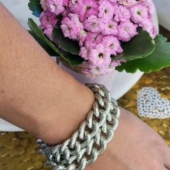 A Blonde and Her Bag women Silver Textured Double Thick Metal Chain Toggle Bracelet