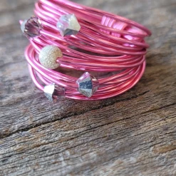 A Blonde and Her Bag women Marcia Wire Wrap Ring in Hot Pink with Grey Comet Swarovski Crystals